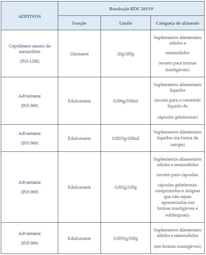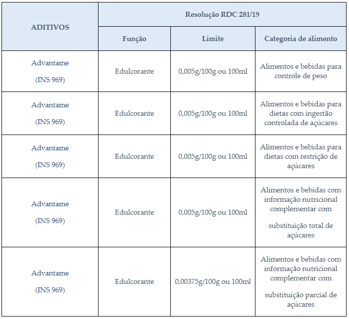 | Foi publicada no Diário Oficial da União de 02/05/2019, a Resolução RDC nº 281, de 29 de abril de 2019 que autoriza o uso de aditivos alimentares e coadjuvantes de tecnologia, em determinadas funções e limites máximos, em diversas categorias de alimentos, conforme destacamos abaixo: