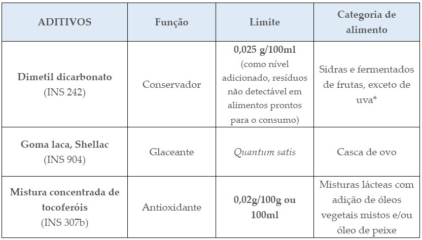 *Atualmente os aditivos para sidra e fermentados de frutas estão dispostos na Resolução CNS/MS. nº 04/88.